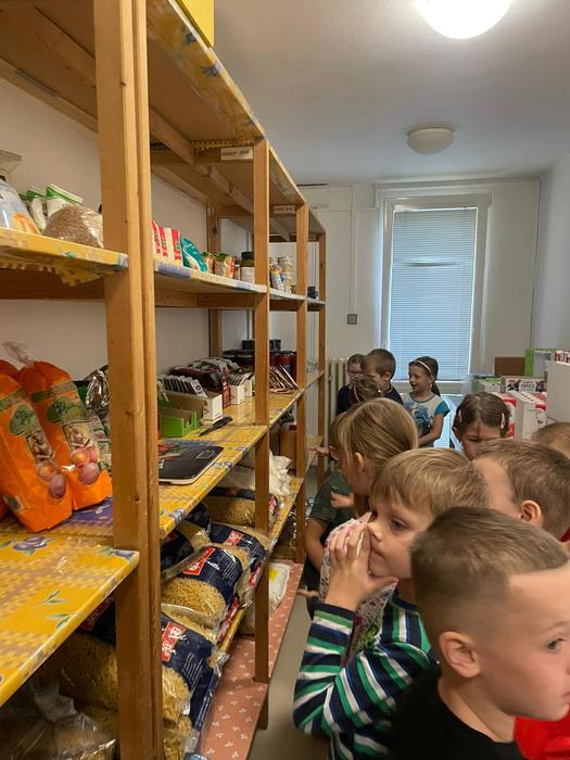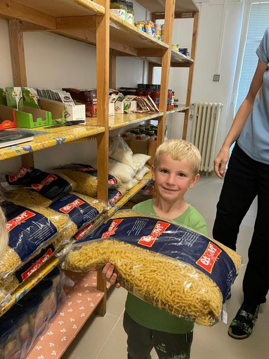 Po zodpovězení všech otázek k tématu jsme se vydali na návštěvu kuchyně a skladu. Nejvíce nás zaujalo velké balení těstovin – bylo opravdu těžké, a tak ho mohli zvednout jen ti nejsilnější!